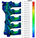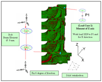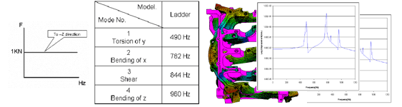 Using Finite element method (FEM) prediction problem for reduce time and cost of trial and error, in picture below show consider ladder frame. Actually ladder frame is assembled in engine unit, and suppose ladder installed between cylinder-block and oil-pan is loaded through crank-shaft. Therefore in this case forecast stress and deformation. Result is can used for design ladder frame about static and dynamic filed.